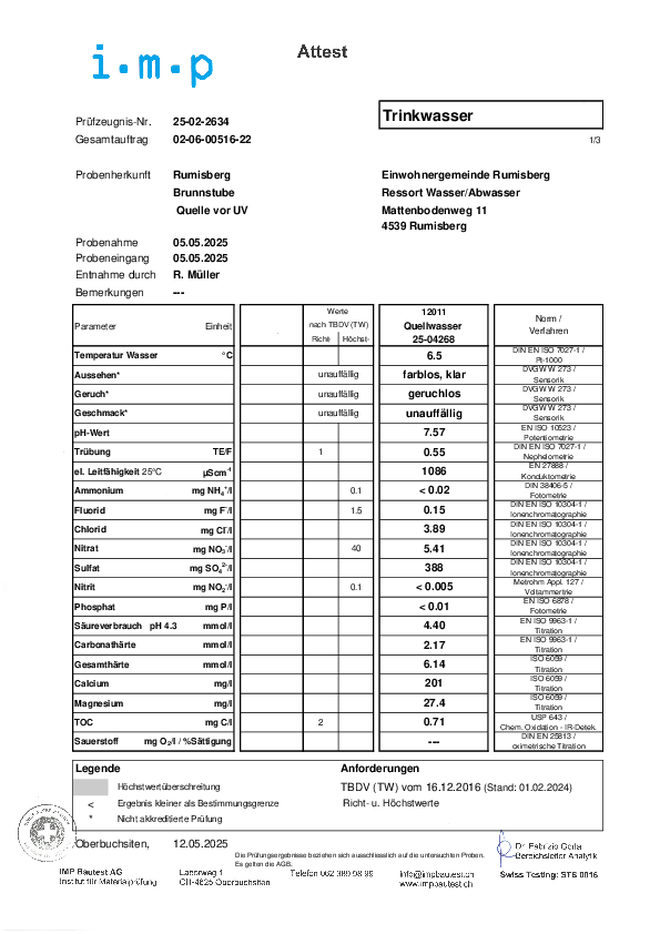 Den aktuellen Attest von der Trinkwasseruntersuchung finden Sie hier.
